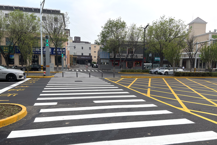 顺义公路分局副局长张波介绍:“本次改造工程,我们不仅对4条道路设施进行优化,还对周边景观及步道进行升级,通过拓展慢行空间,在路侧施划停车位,新增彩色健康步道,全线铺设透水防滑步道砖等举措,提升市民出行品质。”