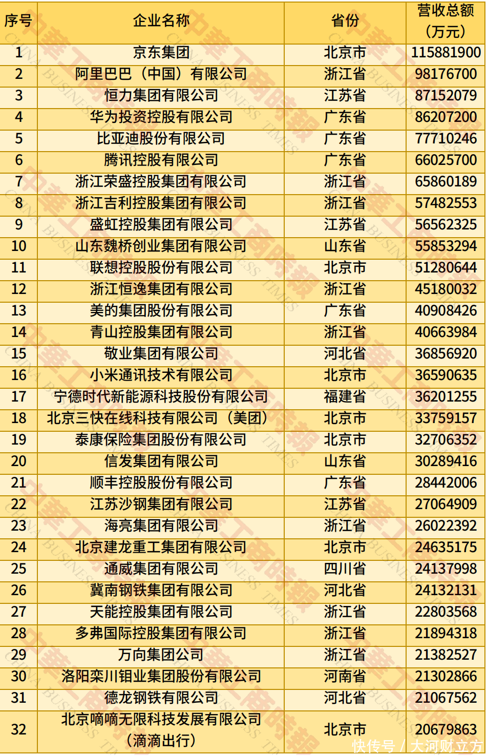 【大河财立方消息】8月28日维度配资,全国工商联公布2025中国民营企业500强榜单。京东集团、阿里巴巴(中国)有限公司、恒力集团位居前三。