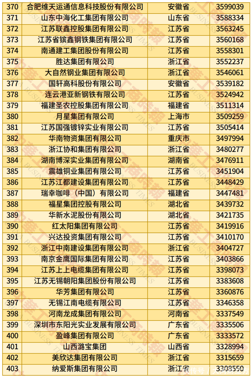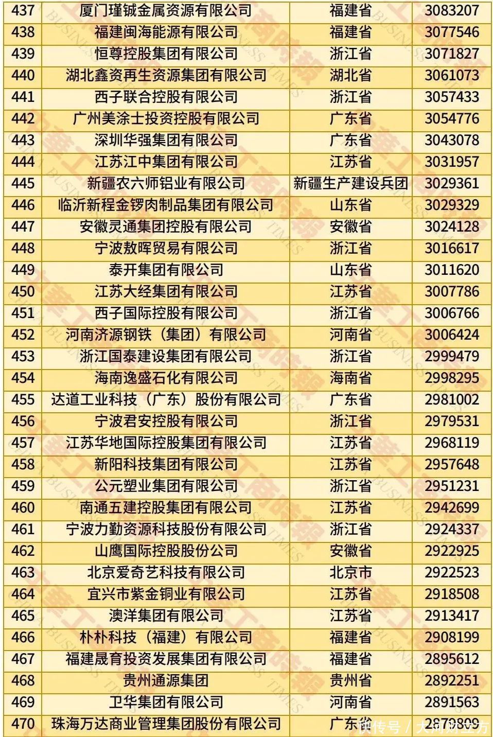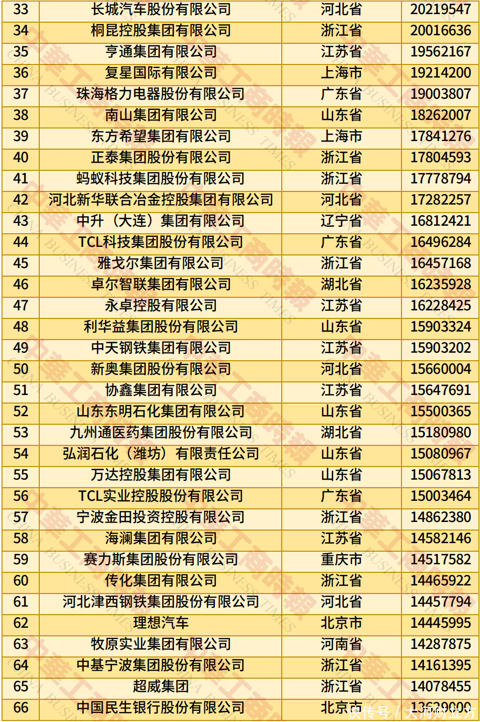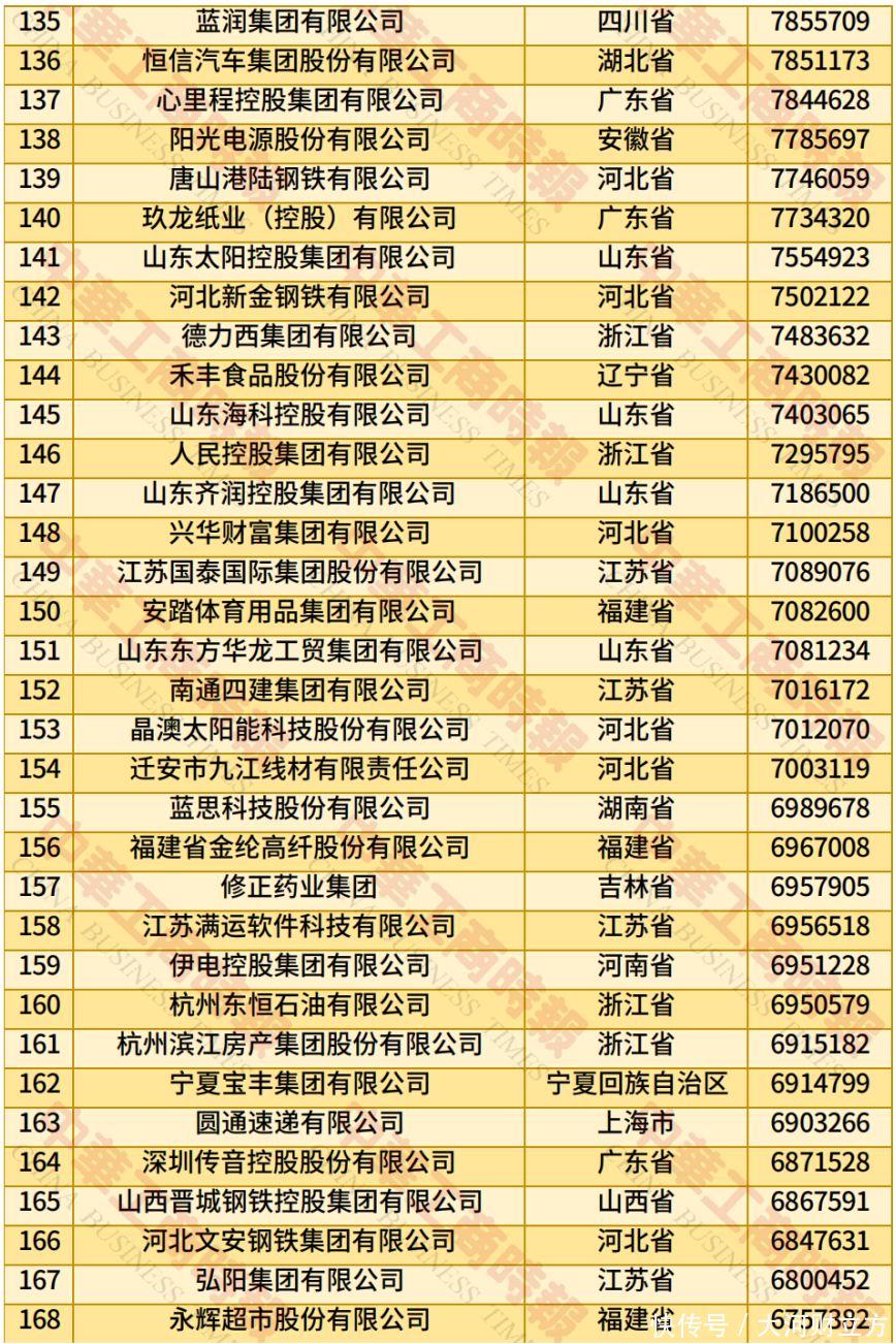 15家河南企业上榜,包括洛阳栾川钼业集团、牧原实业集团、伊电控股集团有限公司、河南双汇投资发展股份有限公司、河南金利金铅集团有限公司、郑州中瑞实业集团有限公司、济源市万洋冶炼(集团)有限公司、河南豫联能源集团有限责任公司、郑州宇通企业集团、河南龙成集团有限公司、河南明泰铝业股份有限公司、河南济源钢铁(集团)有限公司、卫华集团有限公司、河南正商企业发展集团有限责任公司、龙佰集团股份有限公司。